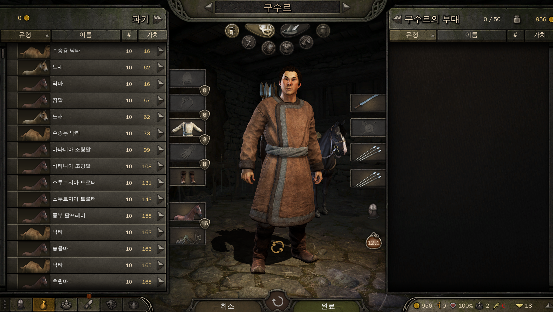 아이템 창은 켜면 왼쪽 목록에서는 말과 무기 같은 모든 아이템이 10개씩 무한 생성됩니다.